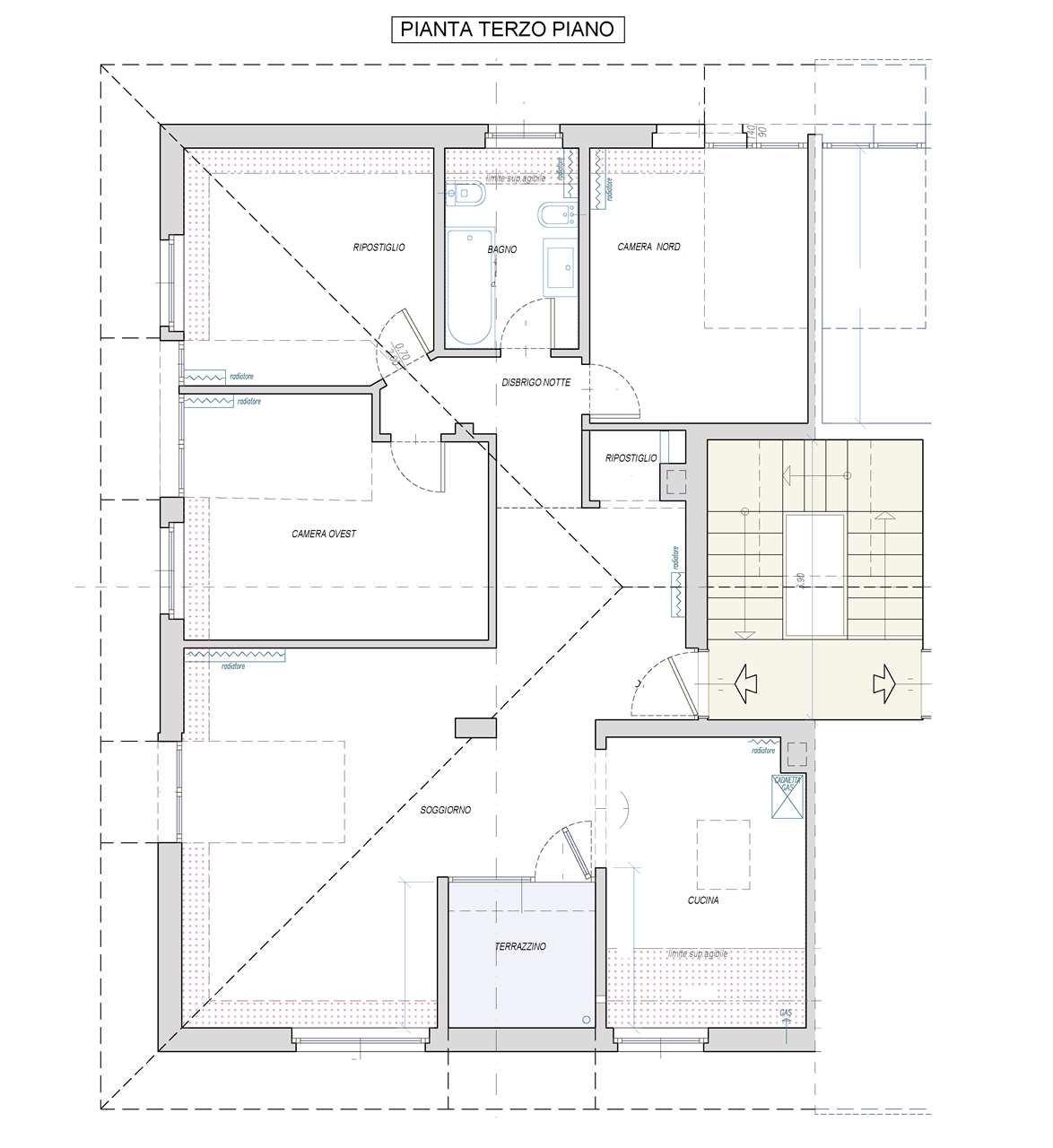 In a highly sought-after location, just a few metres from the lake within a private and well-maintained setting, a FOUR-ROOM APARTMENT partially in need of renovation, on the top floor with excellent south-west exposure. The unit comprises an entrance hall with a storage room where a potential second bathroom could be created, a eat-in kitchen separated from a spacious living room that opens onto a charming rooftop terrace, three large bedrooms, a night hallway, and a windowed bathroom. The property is completed by a convenient basement cellar, easily accessible even with bicycles. The property is enhanced by a well-kept condominium park where residents can enjoy moments of relaxation in complete privacy. Over the years, the building has also benefited from several renovation works, including a new roof, repainting of the external façades, and a refurbished entrance. Free from Gilmozzi restrictions, making it appealing both as a holiday home and as a primary residence. Generous dimensions in a highly desirable location, available immediately — not to be missed. Private parking space available for purchase.