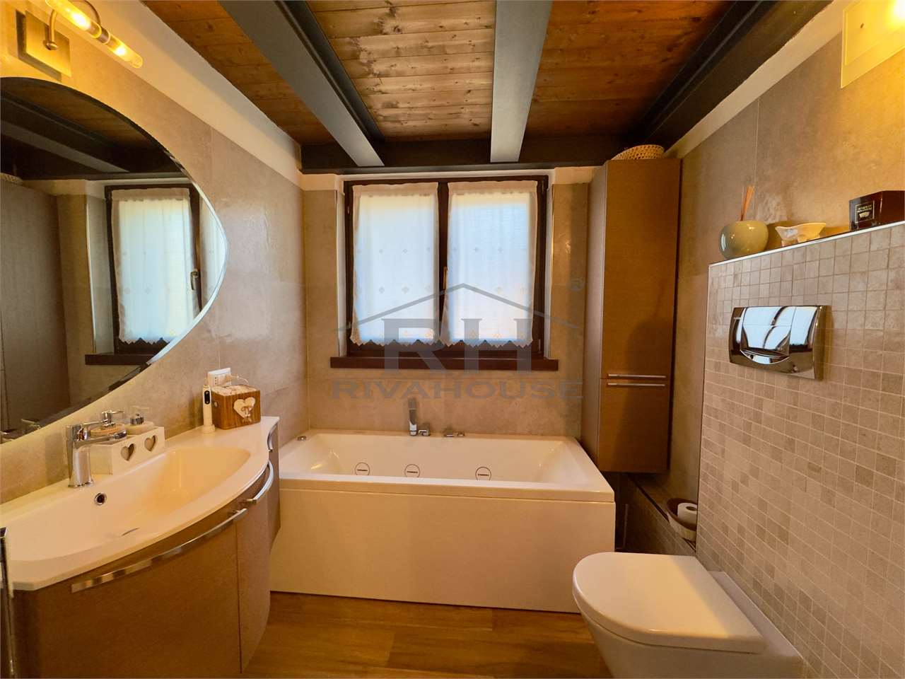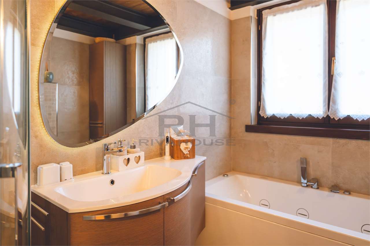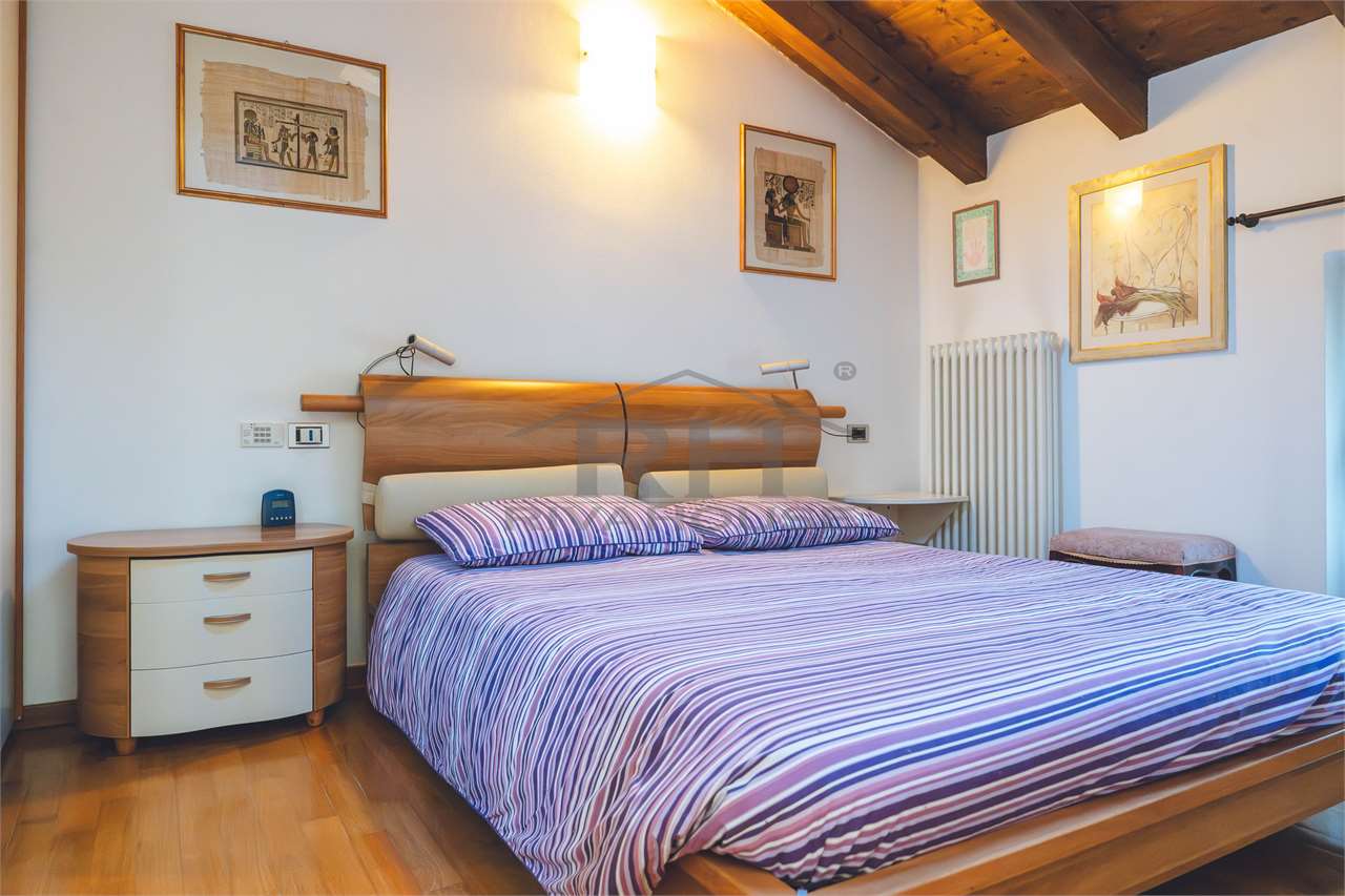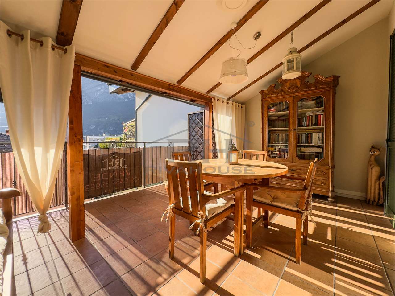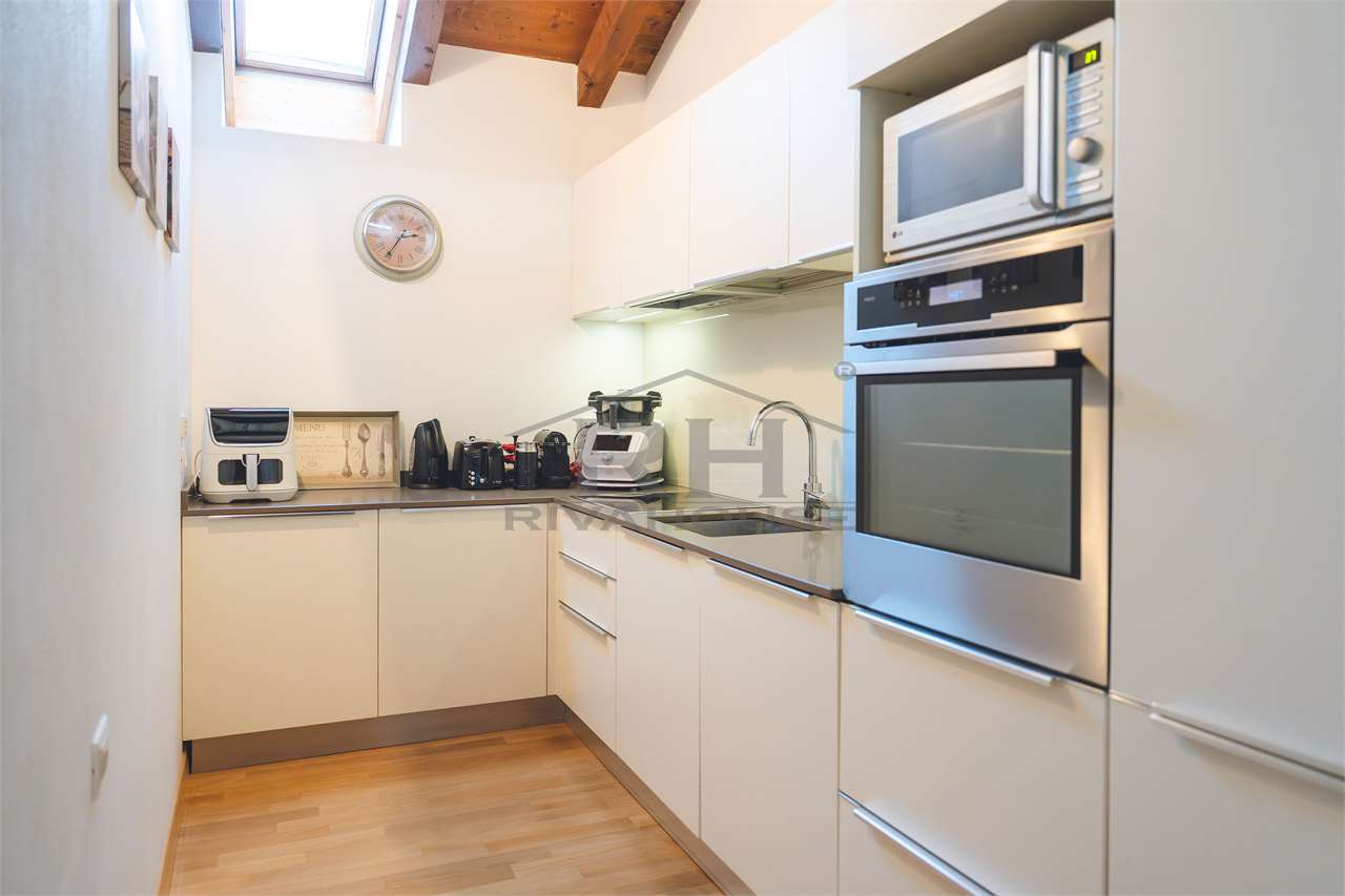 Un angolo di serenità e raffinatezza: questo attico è situato in una delle zone più tranquille e ricercate della città, pur rimanendo comodissimo a tutti i principali servizi (supermercati, banca, scuole, piscina, farmacia, gelateria, pizzerie varie, ecc.), raggiungibili in cinque minuti di passeggiata. L'immobile, finemente curato e ben mantenuto in ogni dettaglio, vanta spazi luminosi e una splendida e ampia terrazza panoramica, che offre una vista mozzafiato sulla città e sul lago, trasformandosi in un luogo conviviale grazie alle dimensioni generose. Si sviluppa su due piani: al piano principale troviamo la zona giorno, un bagno e la zona notte principale, mentre al piano soppalcato è presente un'ulteriore area notte con bagno. L'attico è dotato di un ampio soggiorno che si affaccia sul terrazzo, una cucina separata, tre stanze e due bagni, il tutto impreziosito da materiali pregiati e di carattere. L’edificio in cui si trova l’attico è ben tenuto ed è immerso in un contesto residenziale verde, esclusivo e silenzioso, ideale per chi desidera godere della massima tranquillità senza allontanarsi troppo dal centro città. Completano la proprietà un garage doppio e una cantina, oltre a posti auto condominiali. Le finiture di alta qualità, unite alla disposizione intelligente degli ambienti, rendono questa proprietà unica nel suo genere, perfetta per chi cerca un rifugio di pace senza rinunciare alla comodità.
