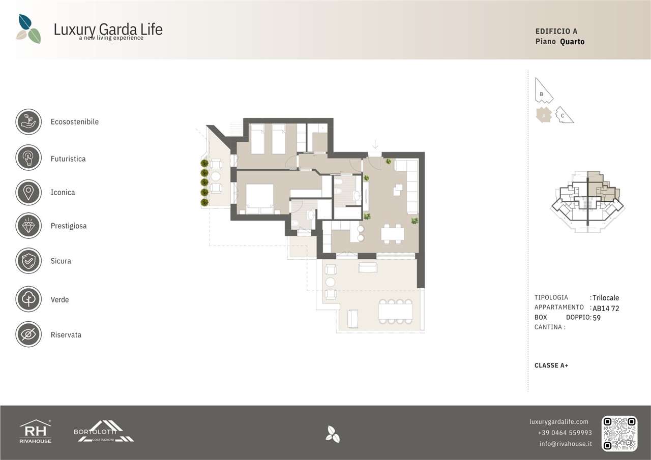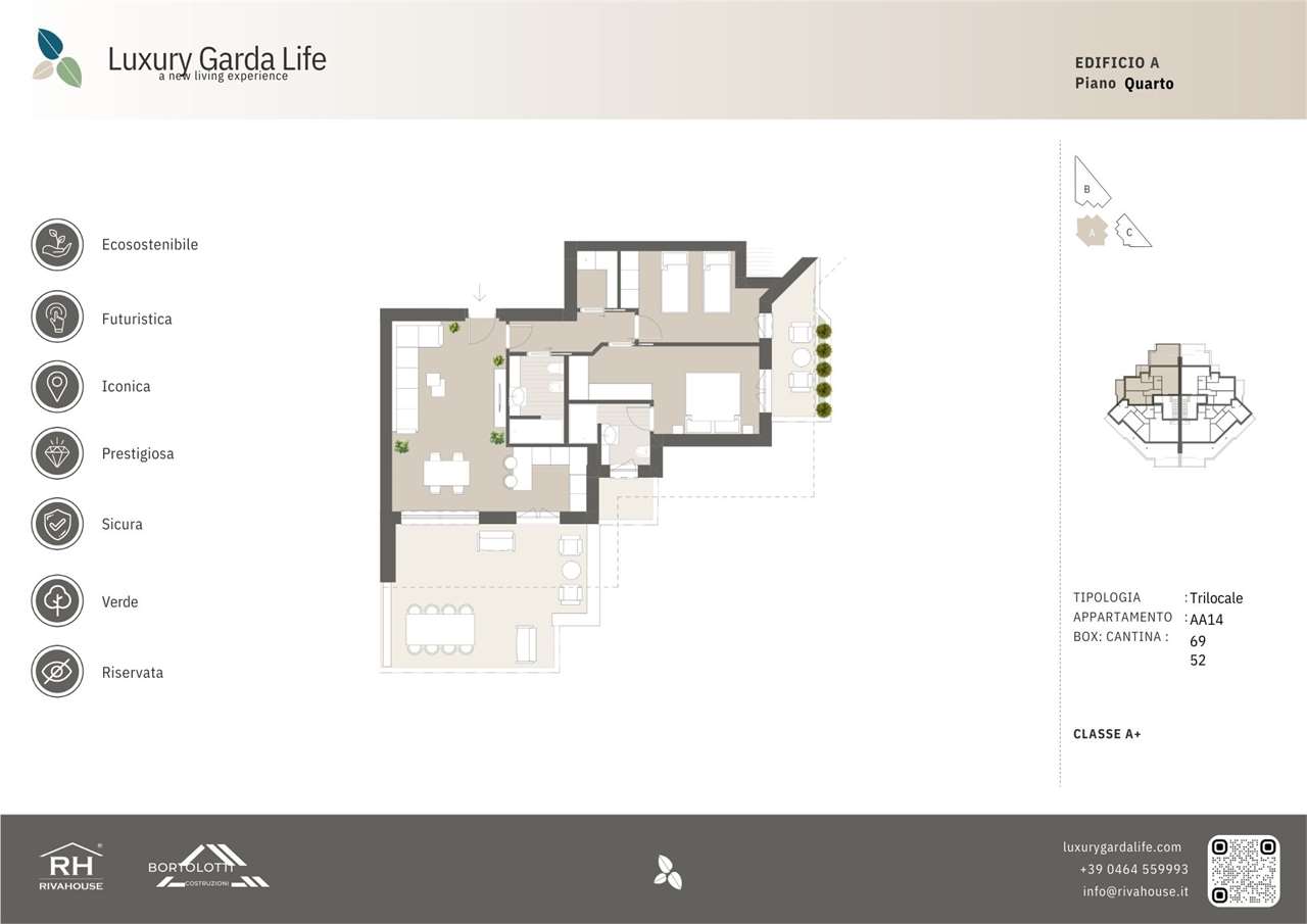 Situato al quarto piano di un edificio di nuova costruzione, questo attico garantirà un alto livello di stile di vita grazie alle moderne finiture, agli impianti evoluti. Dall'ingresso si accede all'ampia zona giorno, quasi completamente vetrata verso il terrazzo. L'area cottura, la zona pranzo e il living sono luminosi, spaziosi e accoglienti. Il terrazzo è ampio e perfetto per mangiare all'aperto e rilassarsi al sole. La zona notte comprende due stanze da letto, una delle quali con bagno en suite, e anch'esse affacciate su un terrazzo. Una sala da bagno molto confortevole e un ripostiglio completano la straordinaria bellezza dell'abitazione. Completano la proprietà un garage doppio e una cantina. Unico! Contattaci, 0039 0464 559993 o info@rivahouse.it.